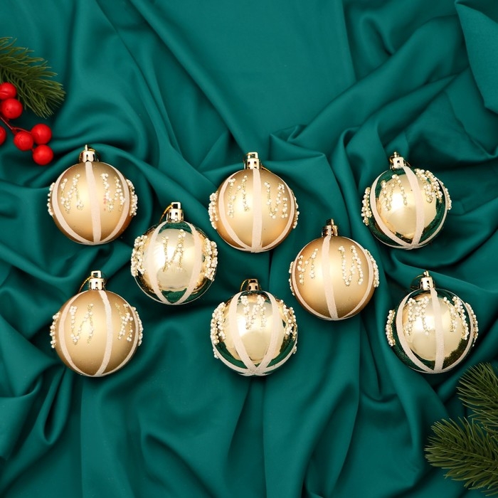 Набор шаров пластик d-5,5 см, 8 шт "Маскарад" золото