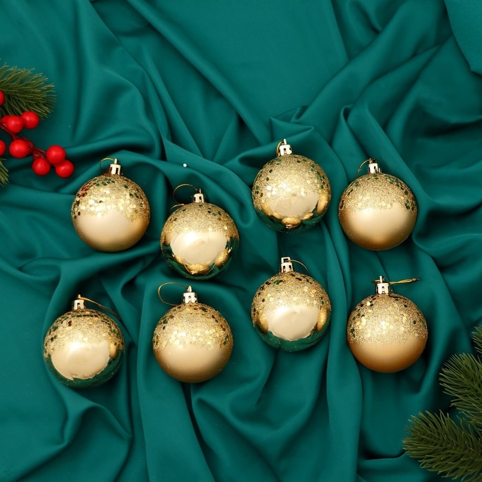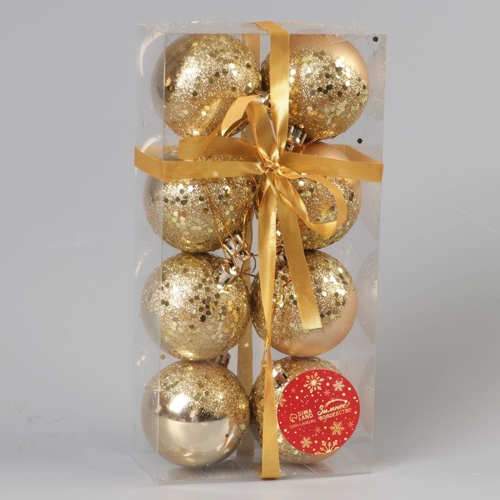 Набор шаров пластик d-5,5 см, 8 шт "Волшебство" золото
