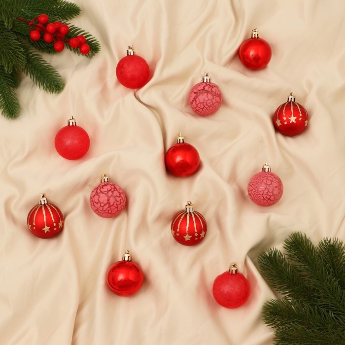 Набор шаров пластик d-5 см, 12 шт "Морозная ночь" красный