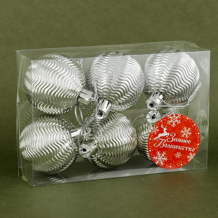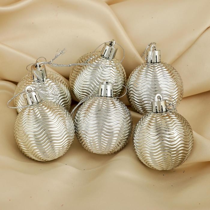 Набор шаров пластик d-5 см, 6 шт "Волна" серебро