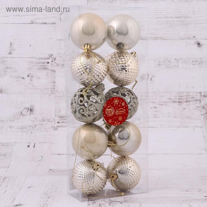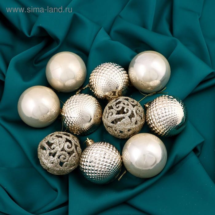 Набор шаров пластик d-6 см, 10 шт "Блеск ажура" золотой