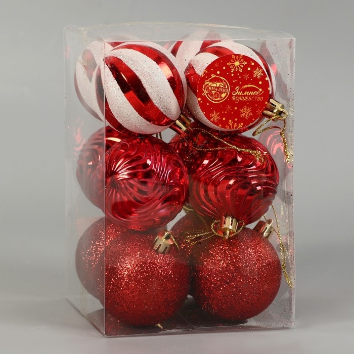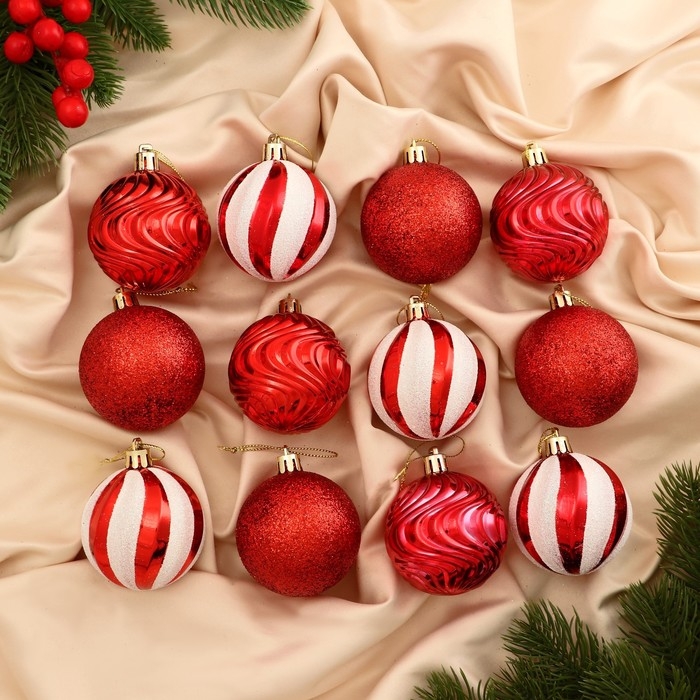 Набор шаров пластик d-6 см, 12 шт "Мелодия" полосы, бело-красный