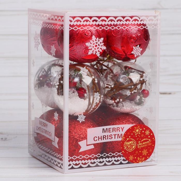 Набор шаров пластик d- 6 см, 12 шт "Зимушка" красный