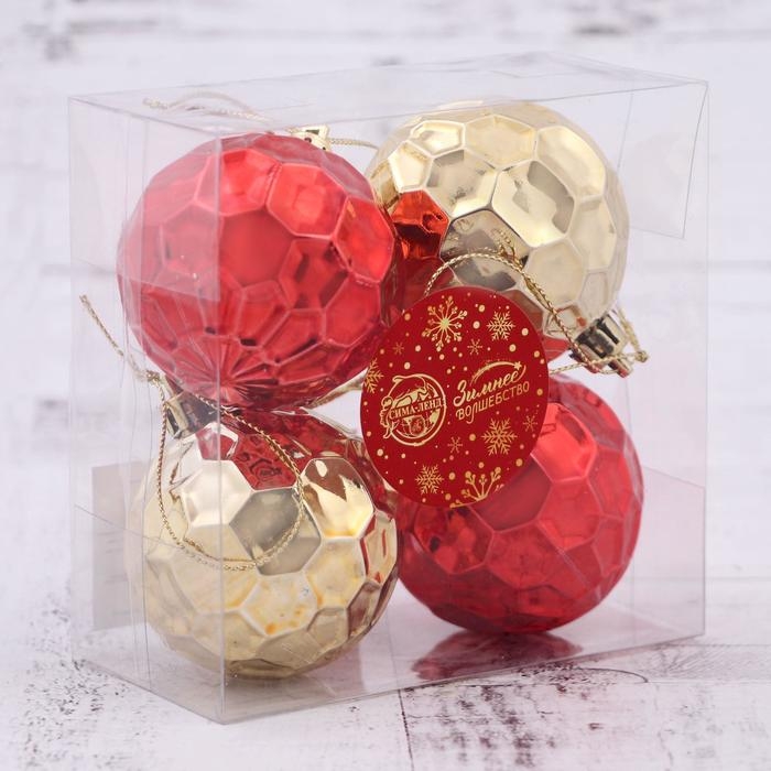 Набор шаров пластик d-6 см, 4 шт "Соты" красно-золотой