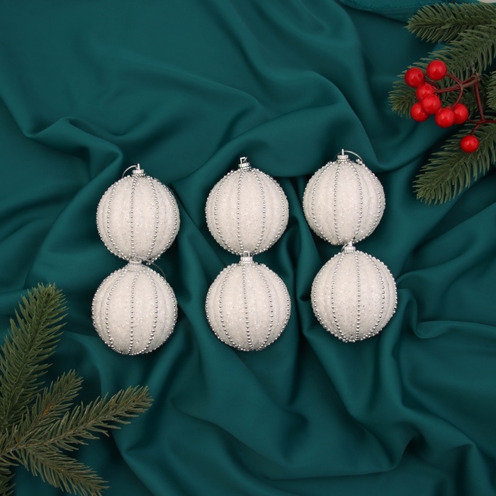 Набор шаров пластик d-6 см, 6 шт "Брэм" белый