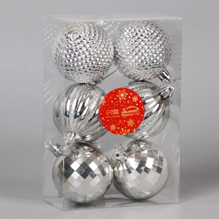 Набор шаров пластик d-6 см, 6 шт "Диско микс" серебристый