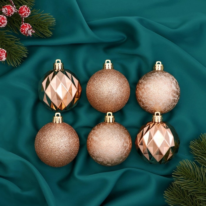 Набор шаров пластик d-6 см, 6 шт "Элит грани" золото