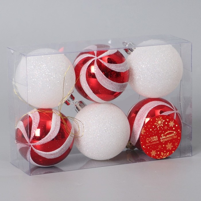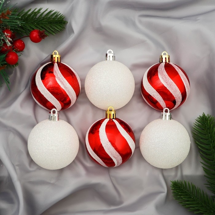 Набор шаров пластик d-6 см, 6 шт "Праздничный сюрприз" красно-белый
