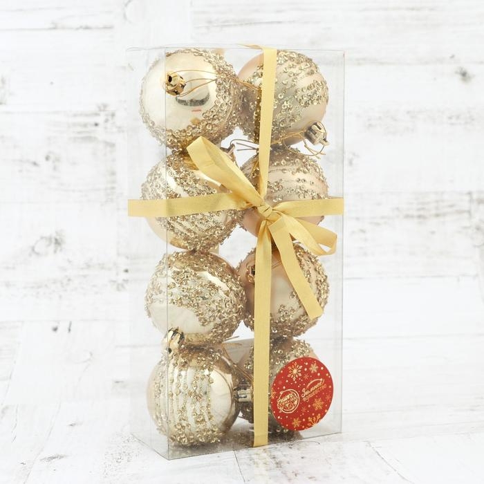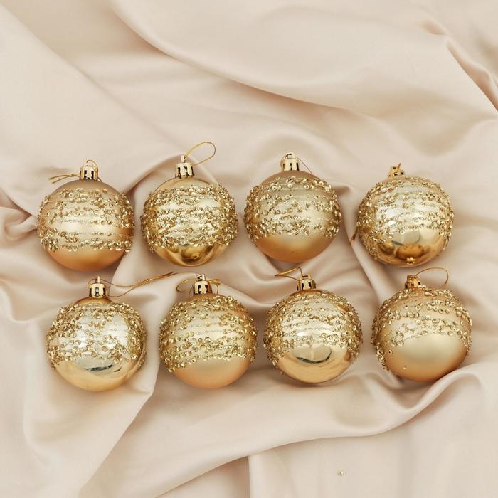 Набор шаров пластик d-6 см, 8 шт "Ночная вьюга" золото