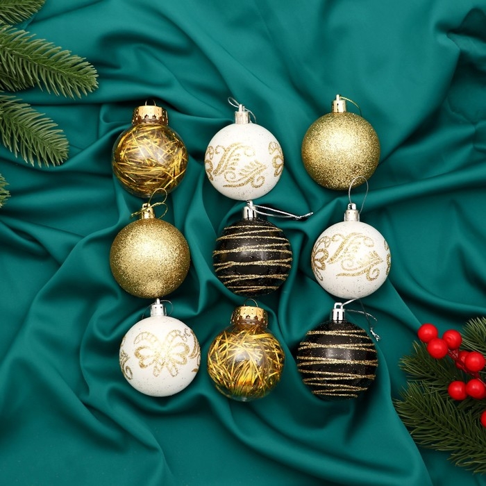 Набор шаров пластик d-6 см, 9 шт "Мелодия" орбита диско элит золото, микс