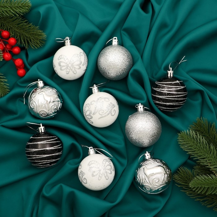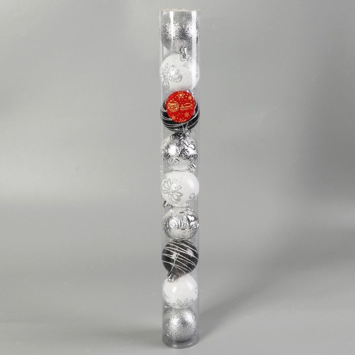 Набор шаров пластик d-6 см, 9 шт "Мелодия" орбита узор элит серебро, микс