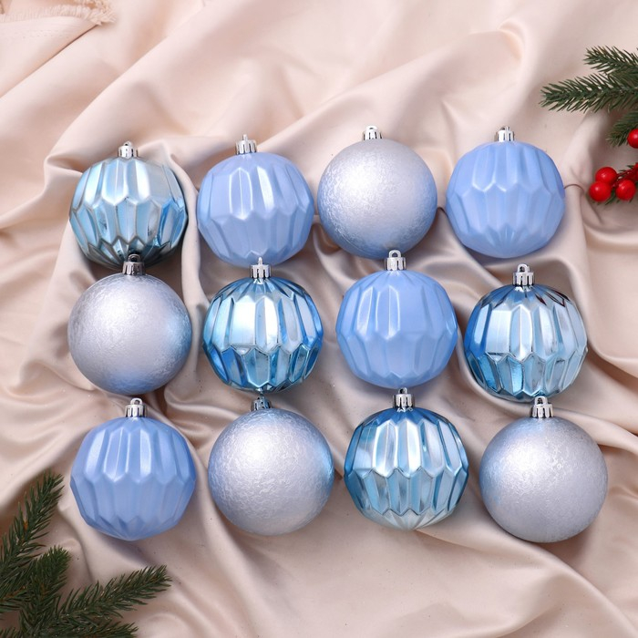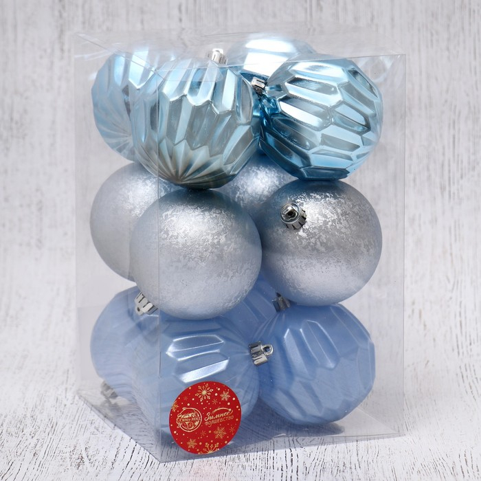 Набор шаров пластик d-8 см, 12 шт "Шерил" голубой