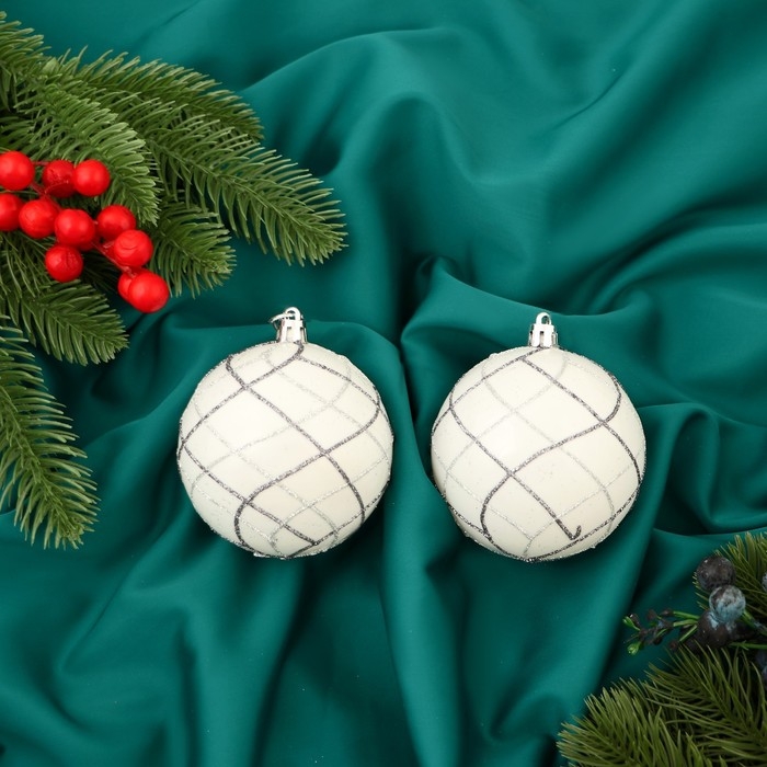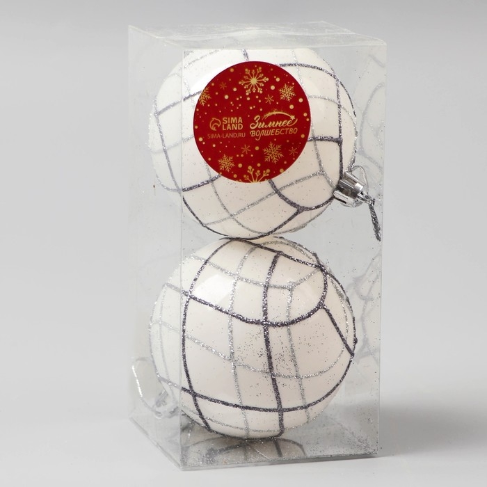 Набор шаров пластик d-8 см, 2 шт "Геометрия" белый