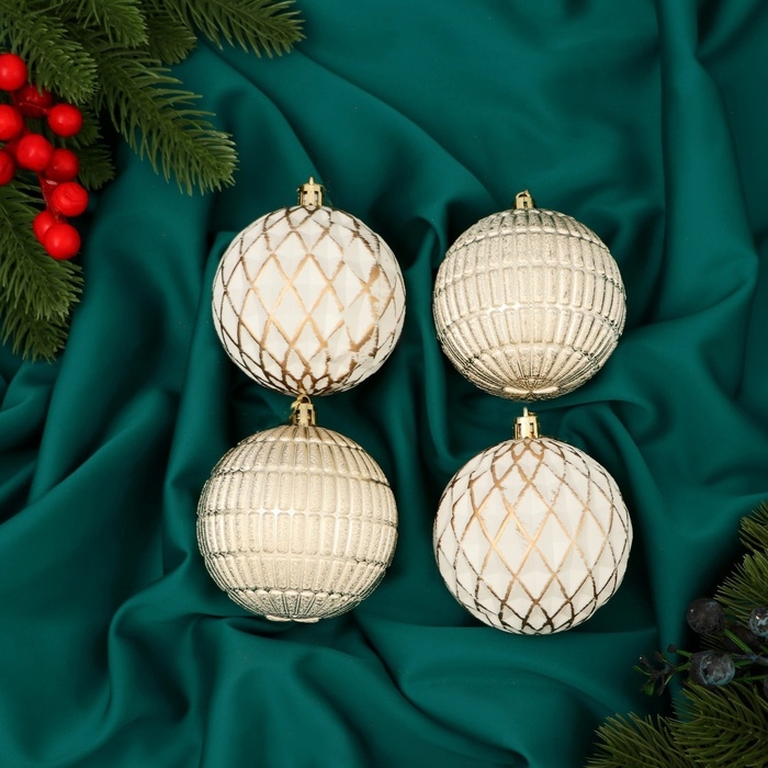 Набор шаров пластик d-8 см, 4 шт "Авива" сетка, золото