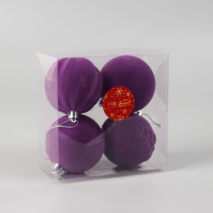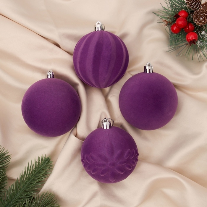 Набор шаров пластик d-8 см, 4 шт "Бархатный зной" фиолетовый