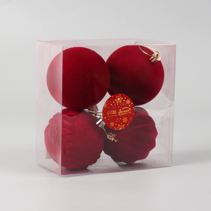 Набор шаров пластик d-8 см, 4 шт "Бархатный зной" красный