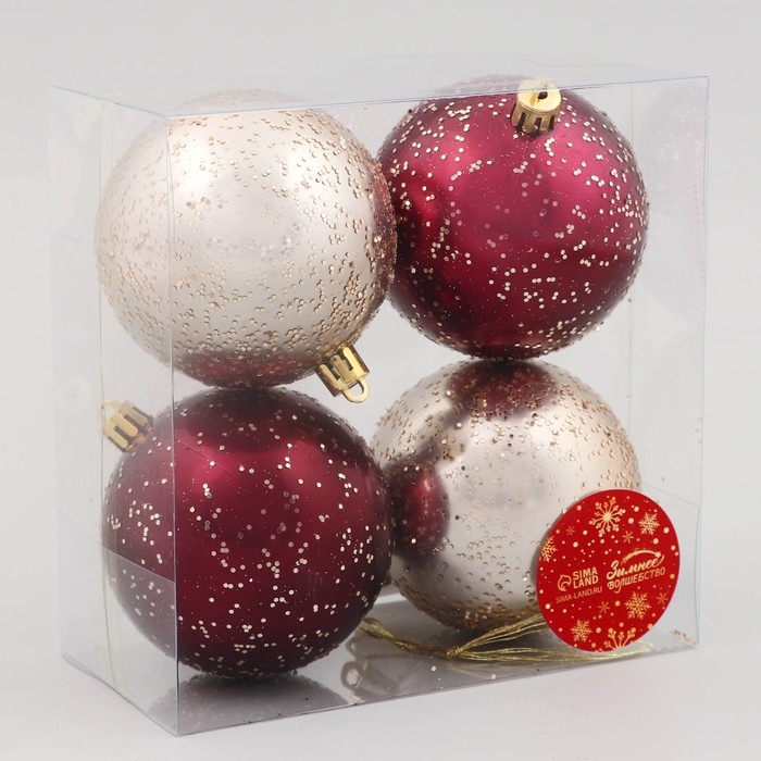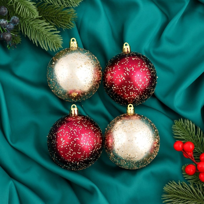 Набор шаров пластик d-8 см, 4 шт "Мэдисон" бордовый золото