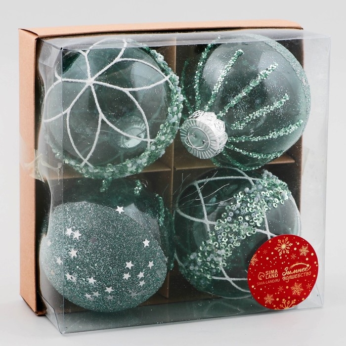 Набор шаров пластик d-8 см, 4 шт "Жаклин" зелёный