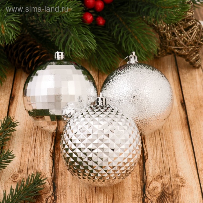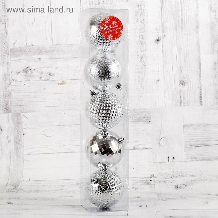 Набор шаров пластик d-8 см, 5 шт "Колючка" серебро