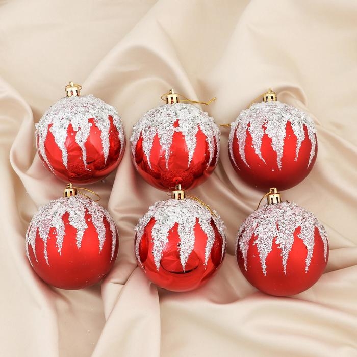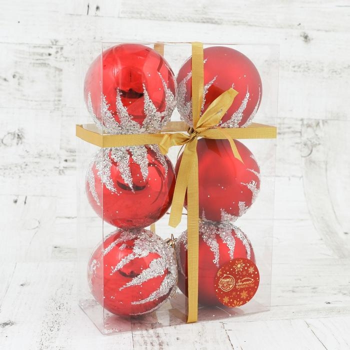 Набор шаров пластик d-8 см, 6 шт "Аделия" серебристо-красный