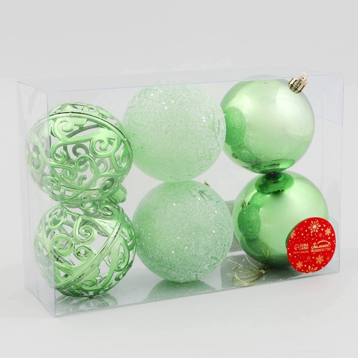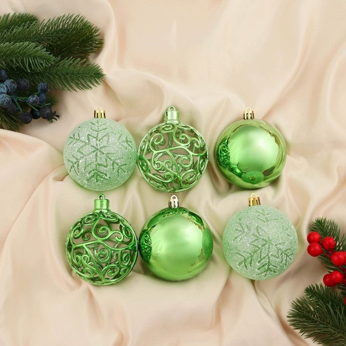 Набор шаров пластик d-8 см, 6 шт "Эстер" снежинки, зелёный