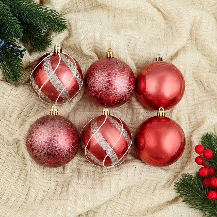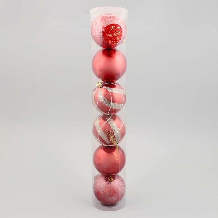 Набор шаров пластик d-8 см, 6 шт "Эйвери" полосы, серебристо-красный