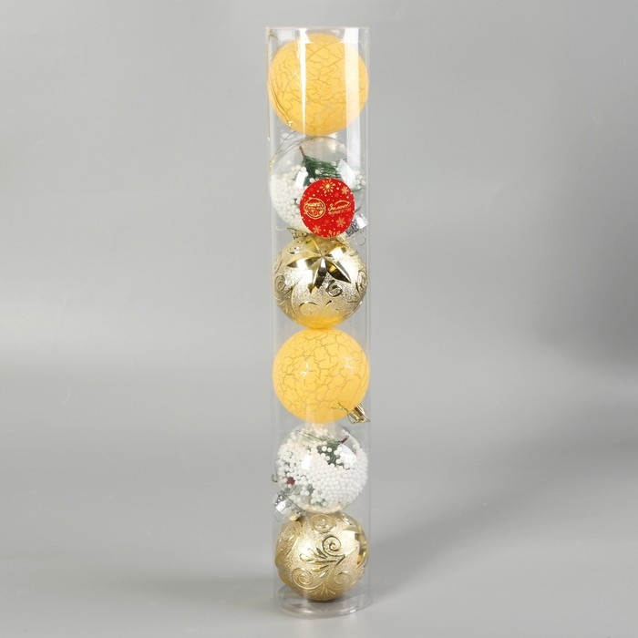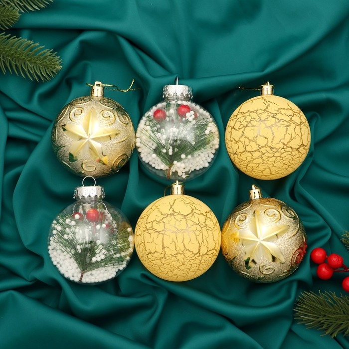 Набор шаров пластик d-8 см, 6 шт "Мелодия" ёлочка треск, золото
