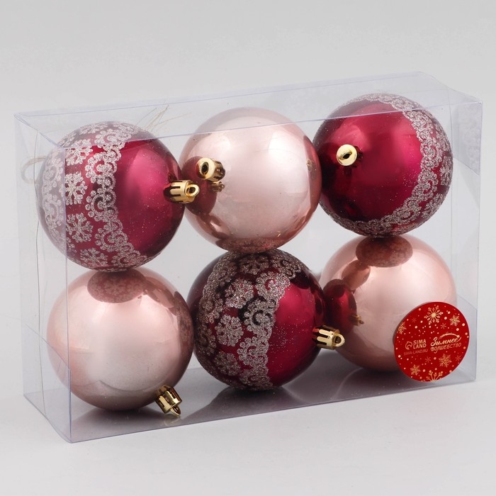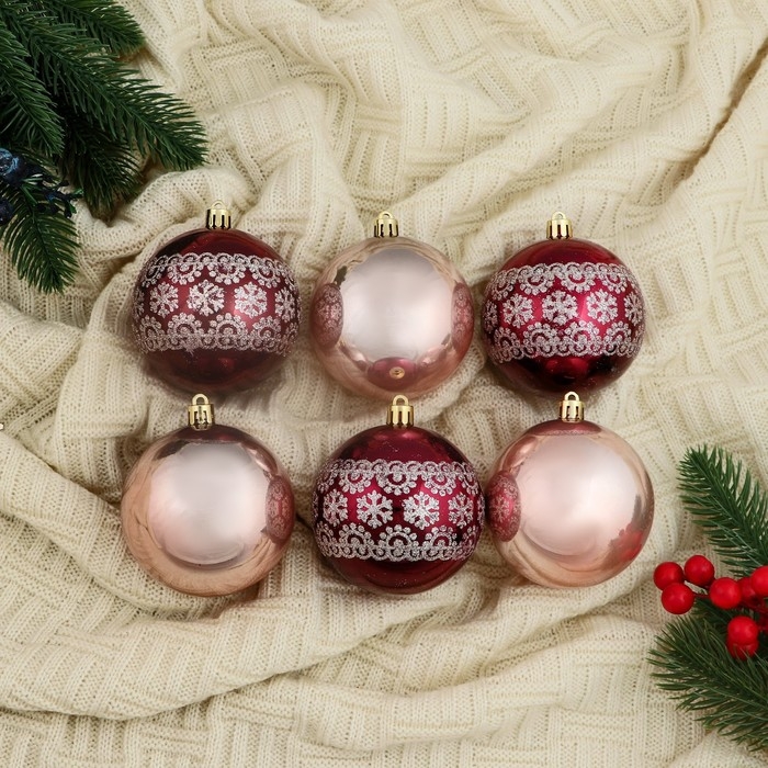 Набор шаров пластик d-8 см, 6 шт "Ночка" цветы узор, бордовый золото