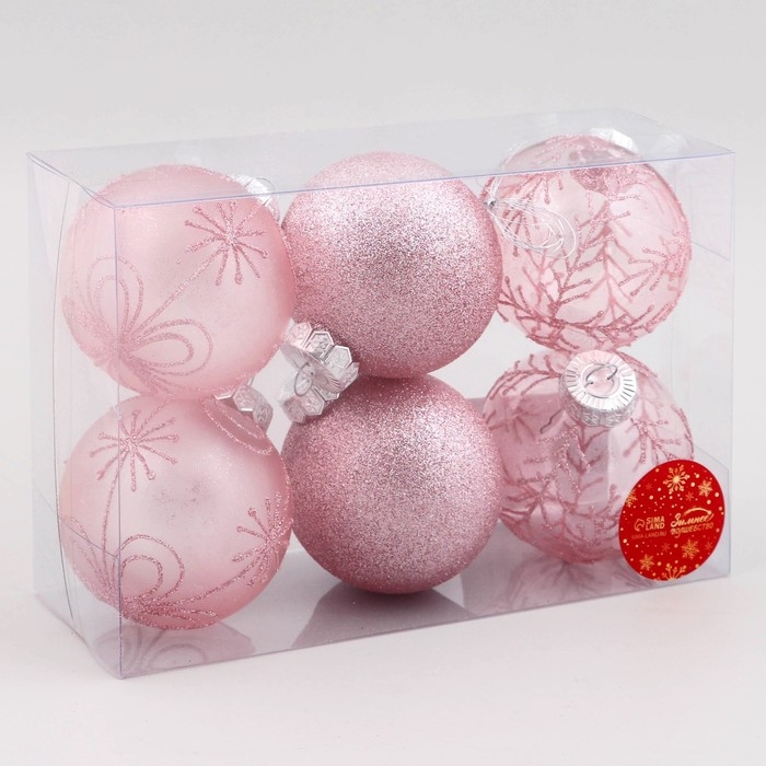 Набор шаров пластик d-8 см, 6 шт "Ночка" морозец, розовый