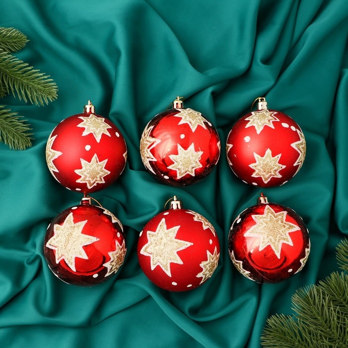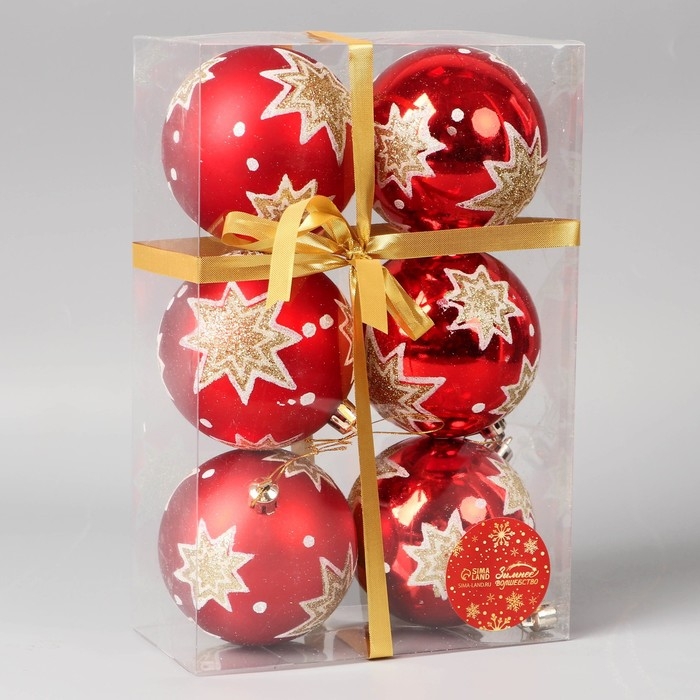 Набор шаров пластик d-8 см, 6 шт "Полночь" красный