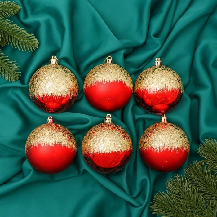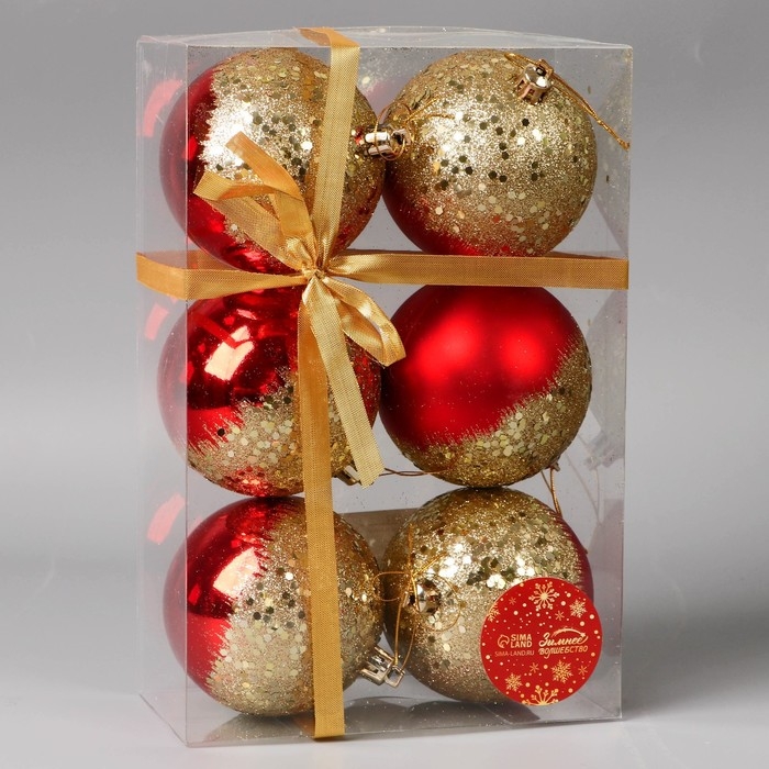 Набор шаров пластик d-8 см, 6 шт "Волшебство" красный
