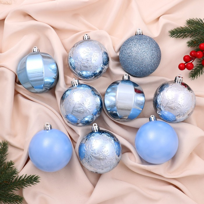 Набор шаров пластик d-8 см, 9 шт "Нерис" голубой