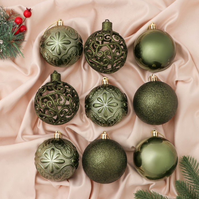 Набор шаров пластик d-8 см, 9 шт "Сильва ассорти" зелёный