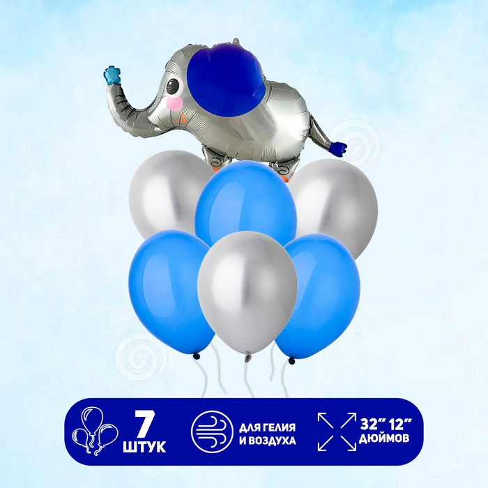 Набор шаров «Воздушный слон», латекс, фольга, 7 шт.