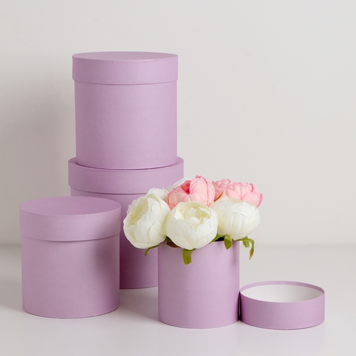 Набор шляпных коробок 4 в 1 "Светлая сирень" 20 × 20 х 20 ‒13 × 13 см