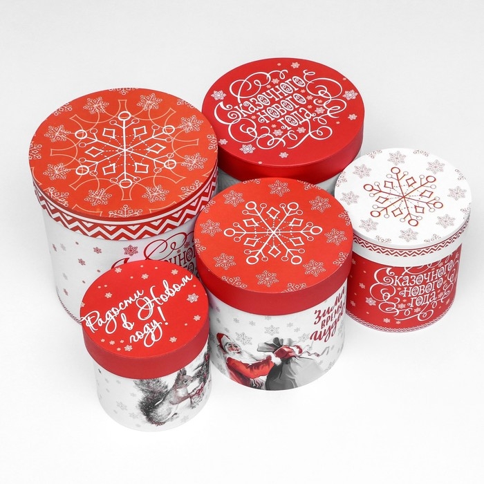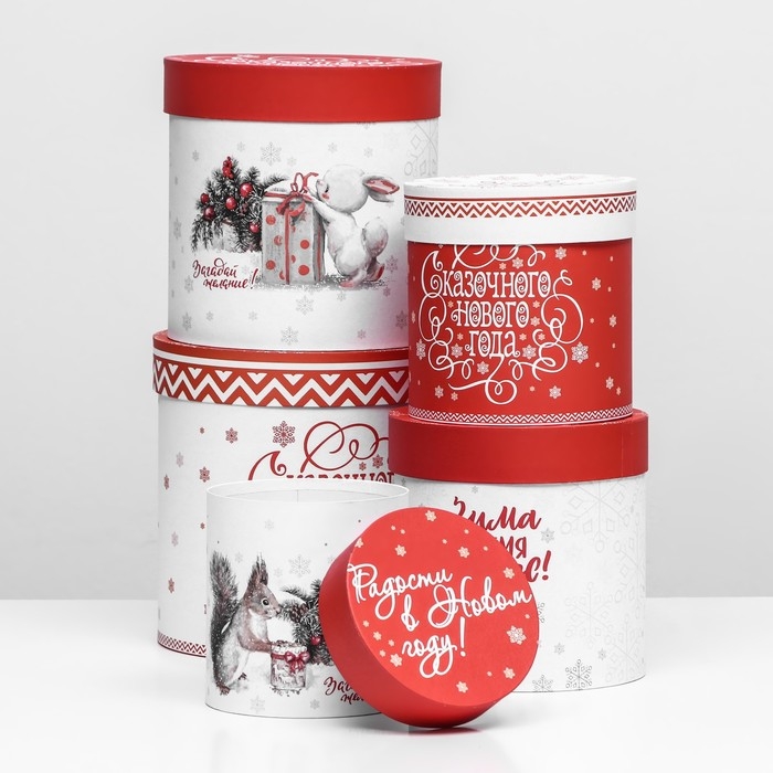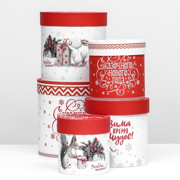 Набор шляпных коробок 5 в 1 «Зима время чудес», 23 х 23 — 15 х 15 см