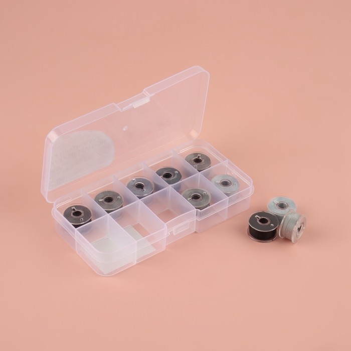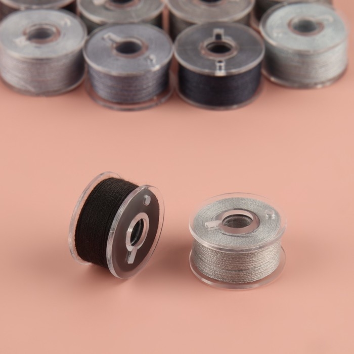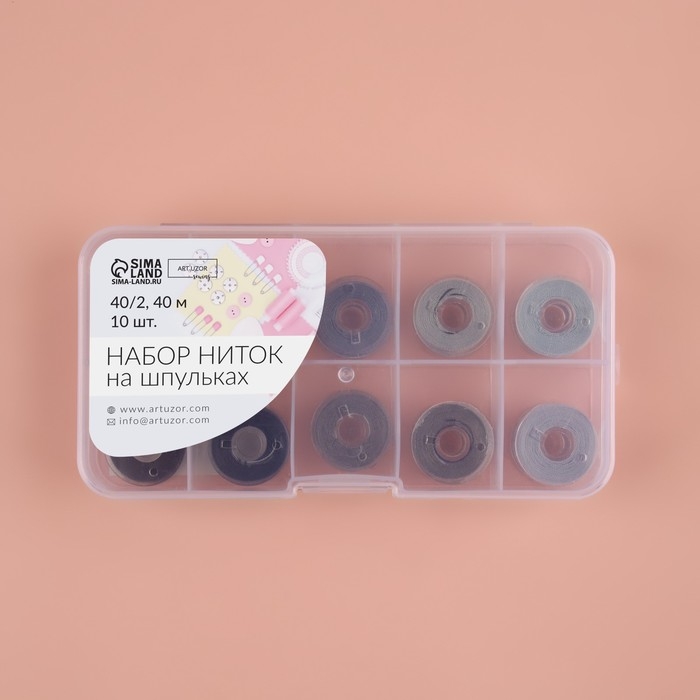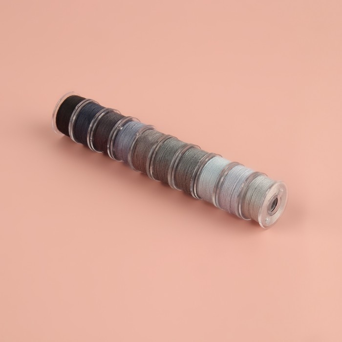 Набор шпулек с нитками, в органайзере, d = 20 мм, 10 шт, цвет серый спектр