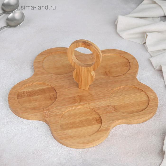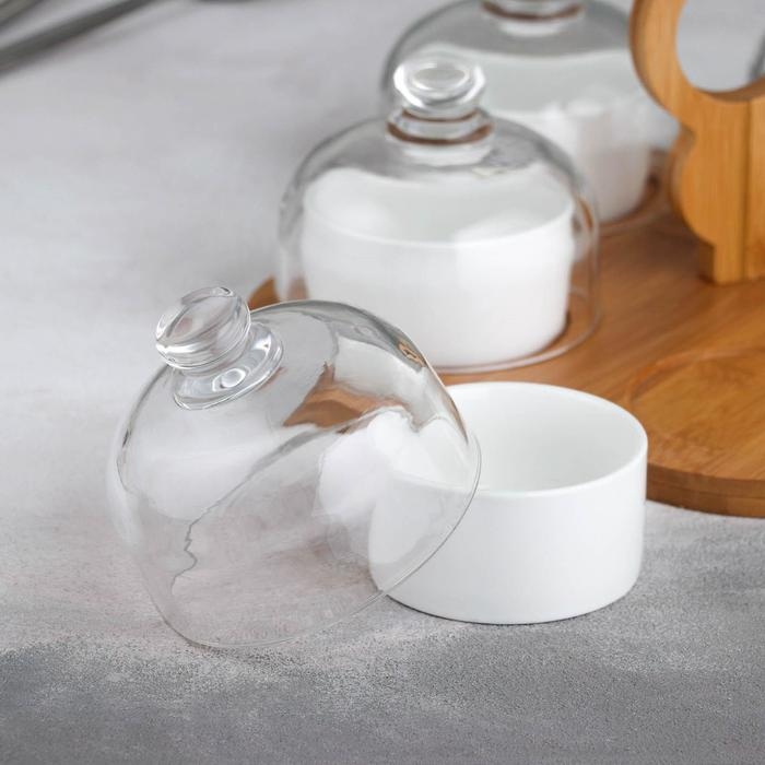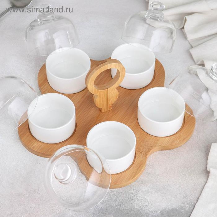 Набор соусников керамический на деревянной подставке «Эстет», 5 предметов, цвет белый