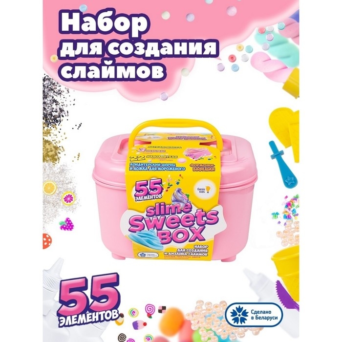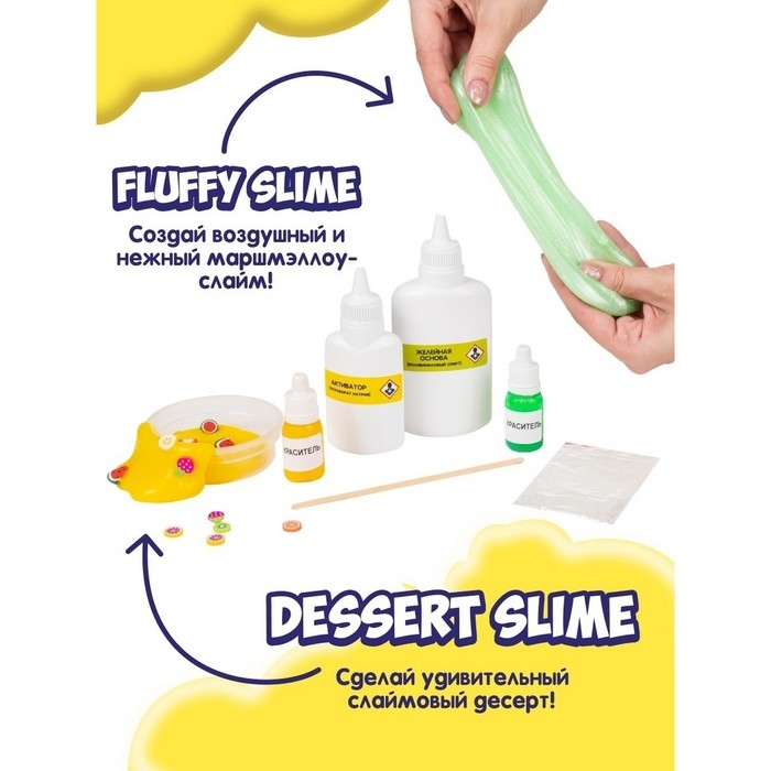 Слаймы — популярная детская игрушка. Они приятные на ощупь, их можно мять и растягивать. В наборе «Создай слайм» их можно замешивать с различными посыпками, делая игру ещё интереснее.