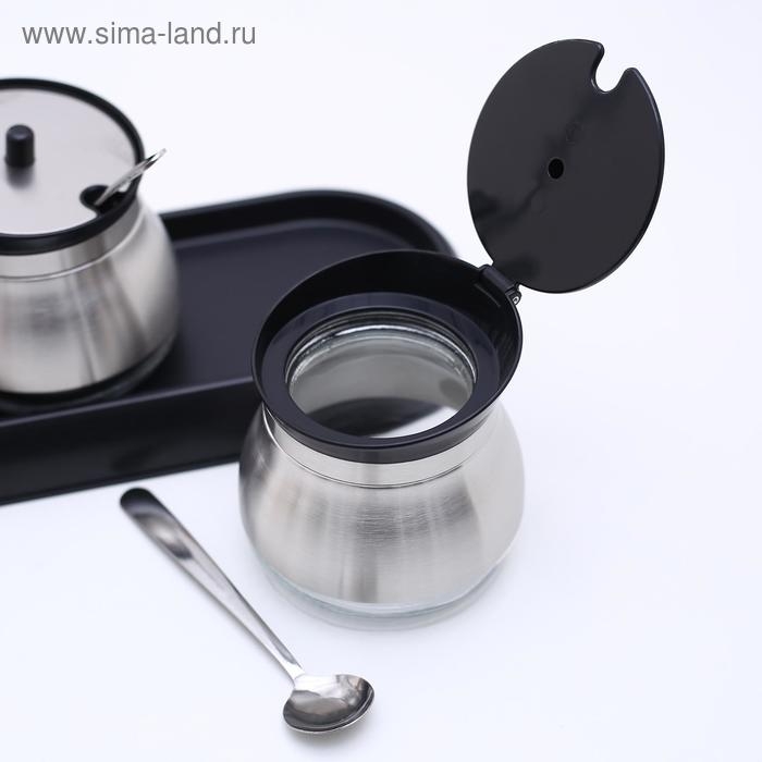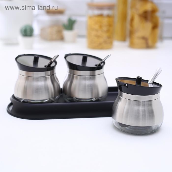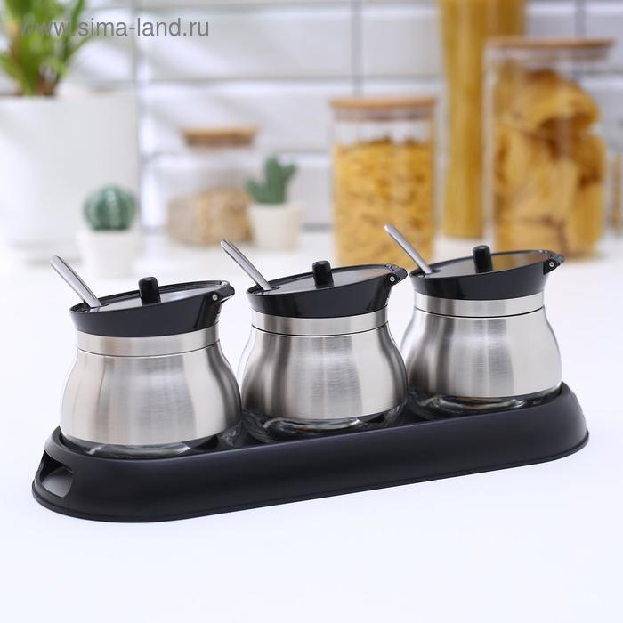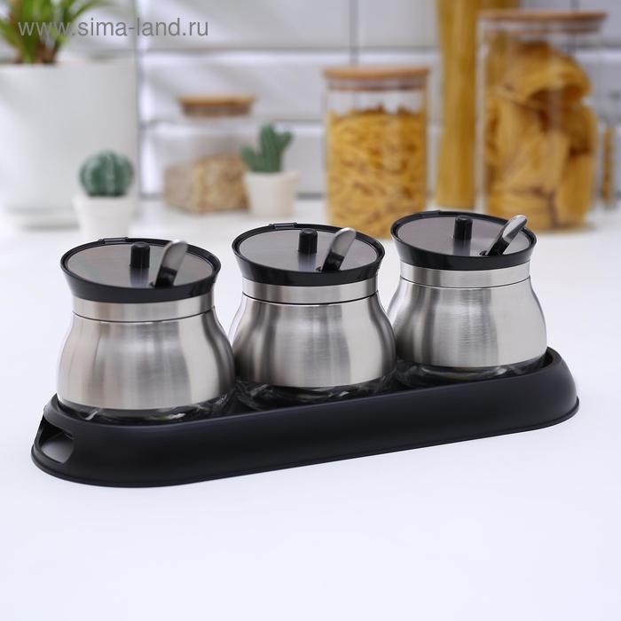 Набор стеклянных банок для сыпучих продуктов «Сияние», 31×12×12 см, на подставке, 3 шт, цвет чёрный