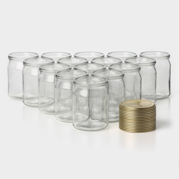 Набор стеклянных банок с крышкой Доляна, СКО-82 мм, 500 мл, 15 штук