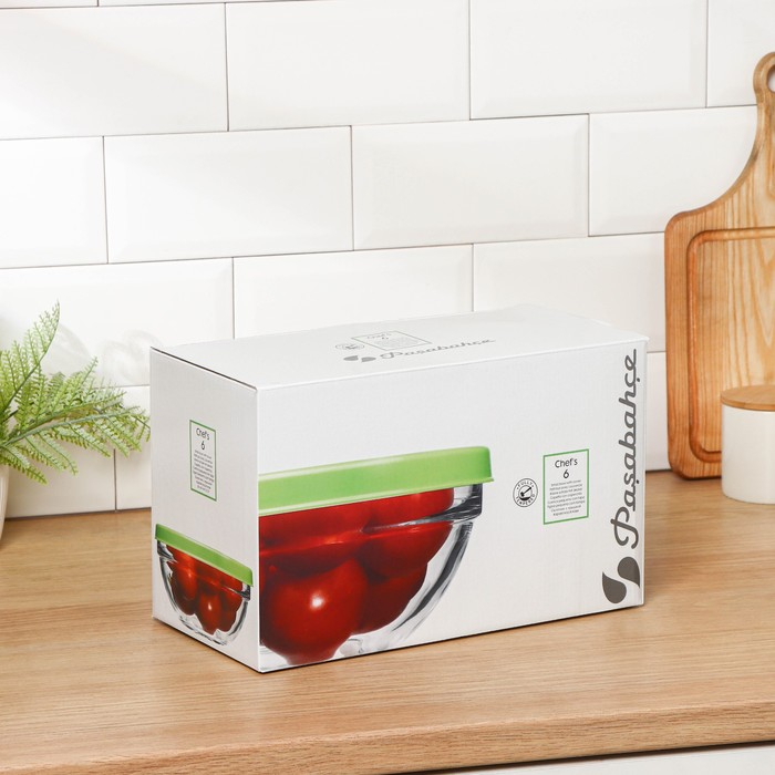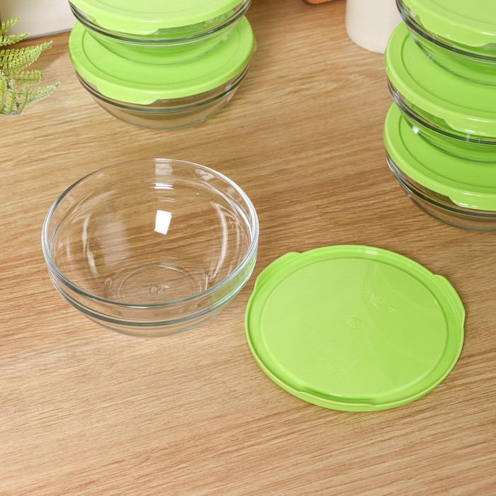 Набор стеклянных салатников с крышкой Chef's, 400 мл, d=14 см, 6 шт
