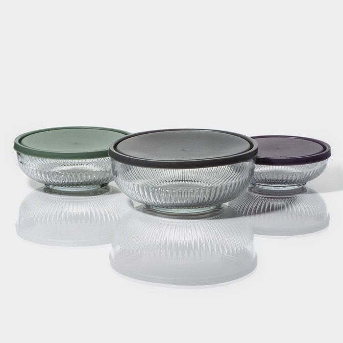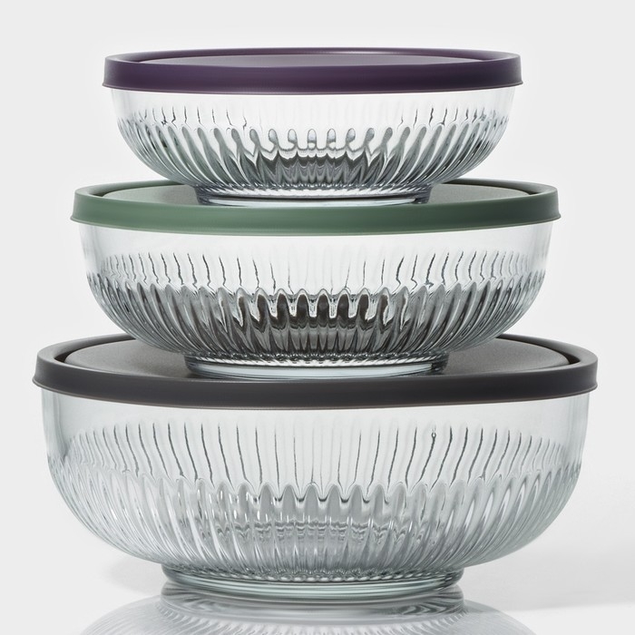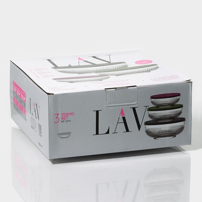 Набор стеклянных салатников с крышкой Lav «Токио», 2,6/1,5/0,8 л, 3 шт