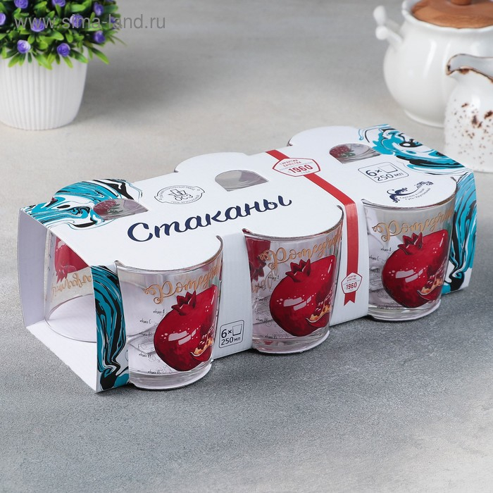 Набор стеклянных стаканов «Полезный гранат», 250 мл, 6 шт