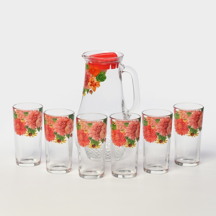 Набор стеклянный для напитков, 7 предметов: кувшин 1,5 л, стаканы 230 мл, МИКС