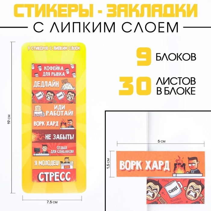 Набор стикеров закладок «Отдых для слабаков», 9 шт, 30 л