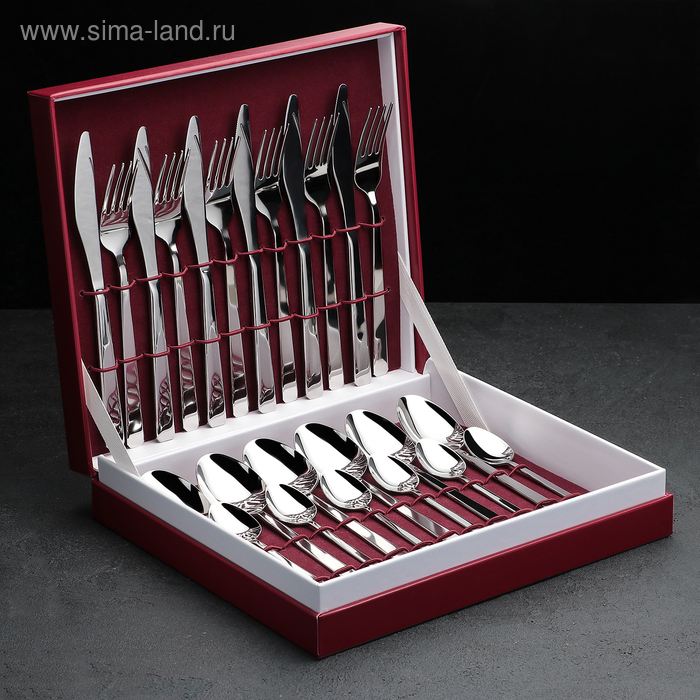 Набор столовых приборов «Аметист», 24 предмета, толщина 2,5 мм, декоративная коробка, цвет МИКС
