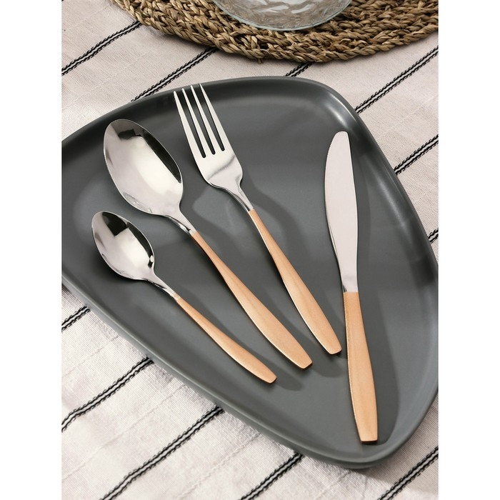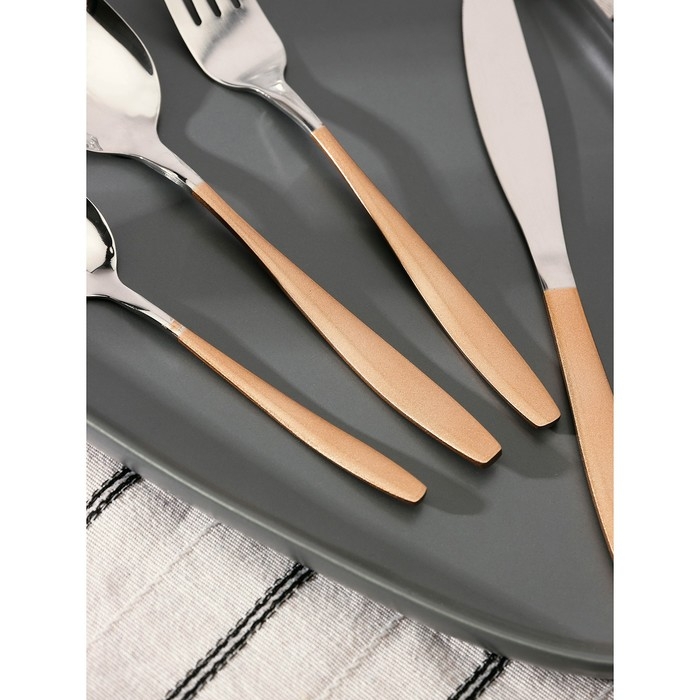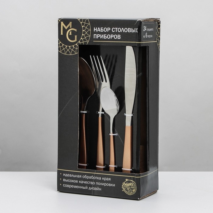 Набор столовых приборов из нержавеющей стали Magistro Temptation, 24 предмета, картонная коробка, цвет ручки золотой, цвет металла серебряный