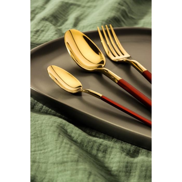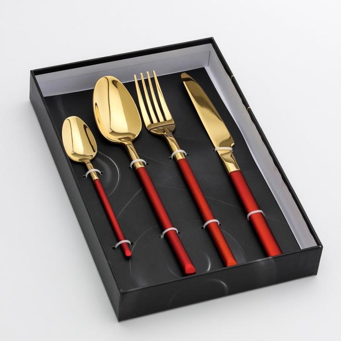 Набор столовых приборов из нержавеющей стали Magistro «Версаль», 4 предмета, цвет металла золотой, красная ручка
