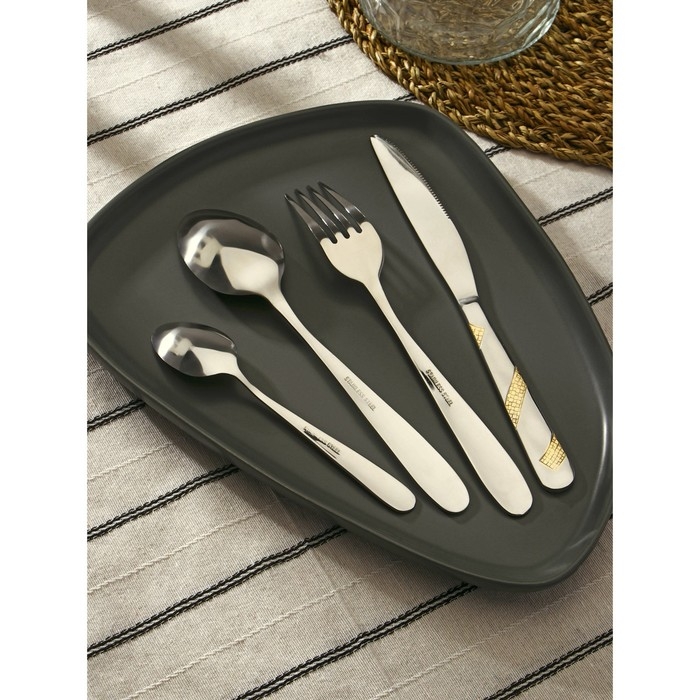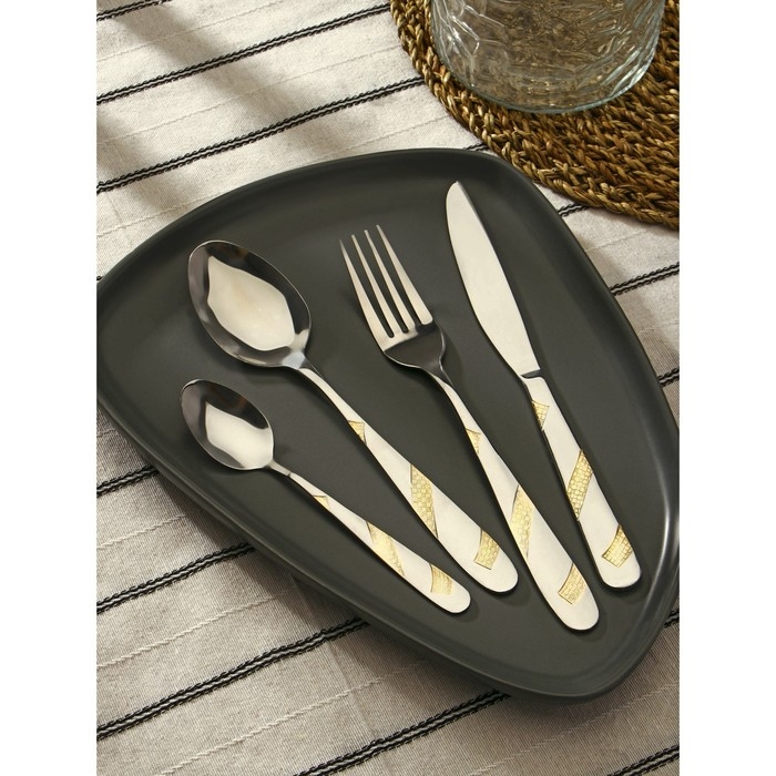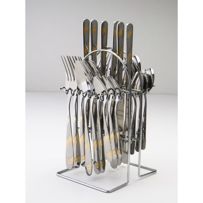Набор столовых приборов из нержавеющей стали «Руно», 24 предмета, на подставке, цвет серебряный